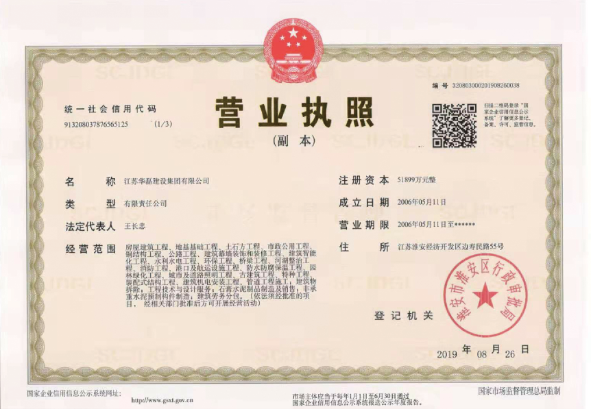 江蘇華磊建設(shè)集團有限公司。2019年8月由原江蘇華磊建筑基礎(chǔ)工程有限公司、淮安五洲建筑工程有限公司組建而成。